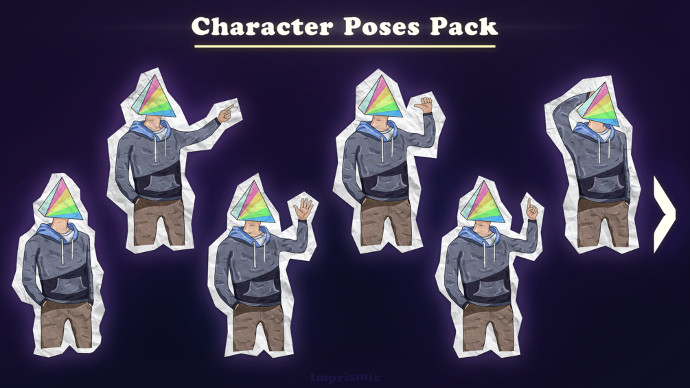 Introducing the Character Poses Pack: a versatile collection of 13 thoughtfully crafted character poses, perfect for a myriad of creative applications. Whether you're a game developer in need of a captivating mascot, an illustrator seeking expressive characters, or a graphic designer looking to add flair to your designs, this pack has you covered. These meticulously crafted characters with their diverse range of poses and emotions will inject charm, excitement, and depth into your projects. Seamlessly integrate them into your game, illustration, or design work, and let them captivate your audience with their cutout-style aesthetics and dynamic expressions. The Character Poses Pack will help you breathe life into your creations and explore new realms of artistic expression.
